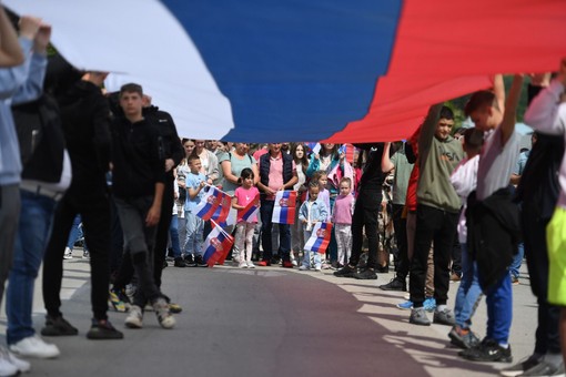 Dugačku srpsku trobojku razvili su i prisutni u svečarskoj koloni koja je prošla gradskim ulicama.