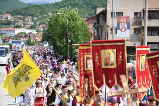 U Leposaviću se danas obeležava opštinska i hramovna slava Sveti Vasilije Ostroški, a veliki broj vernika nosi srpsku zastavu.